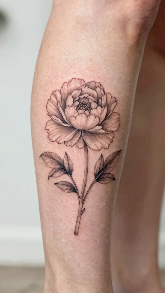 Are you interested in a tattoo that embodies romance and prosperity? The minimalist peony tattoo is a stunning choice, highlighting the flower’s lush petals in a clean design. Often placed on the calf or inner leg, it adds an elegant touch to your body art.