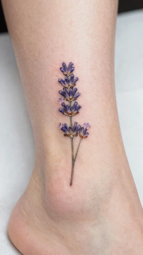 Looking for a tattoo that symbolizes calmness and tranquility? The tiny lavender sprig is an excellent choice for those who value peace in their lives. Designed with simple lines and delicate details, it fits beautifully on the ankle or side of the leg, radiating serenity.