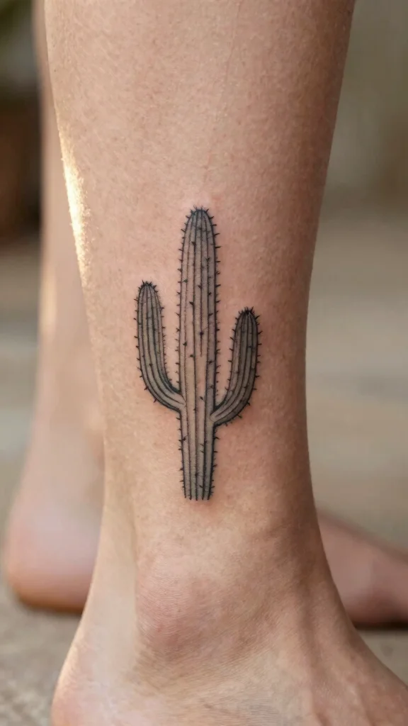 Are you inspired by resilience and endurance? The minimalist cactus tattoo is a powerful choice for women, symbolizing strength and protection. Small yet impactful, it can be placed on the ankle or behind the calf, conveying a meaningful message through its simple lines.