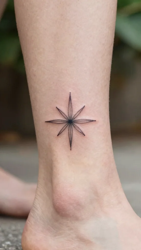 Are you looking for a tattoo that inspires you to reach for your dreams? The simple star flower tattoo is an uplifting choice, symbolizing beauty and aspiration. Designed with minimal lines, it can be placed on the ankle or side of the calf, serving as a lovely reminder to follow your passions.