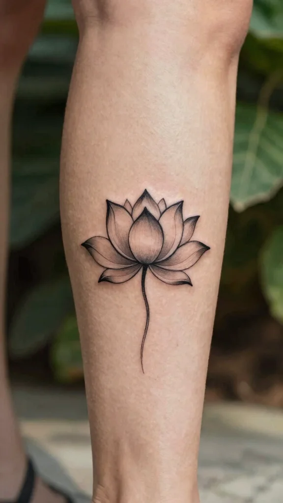 Are you drawn to symbols of purity and inner strength? The elegant lotus tattoo is a perfect choice, embodying beauty and serenity. Its minimalist design translates beautifully to leg tattoos, often showcased on the side of the calf, offering a calming presence in your body art.