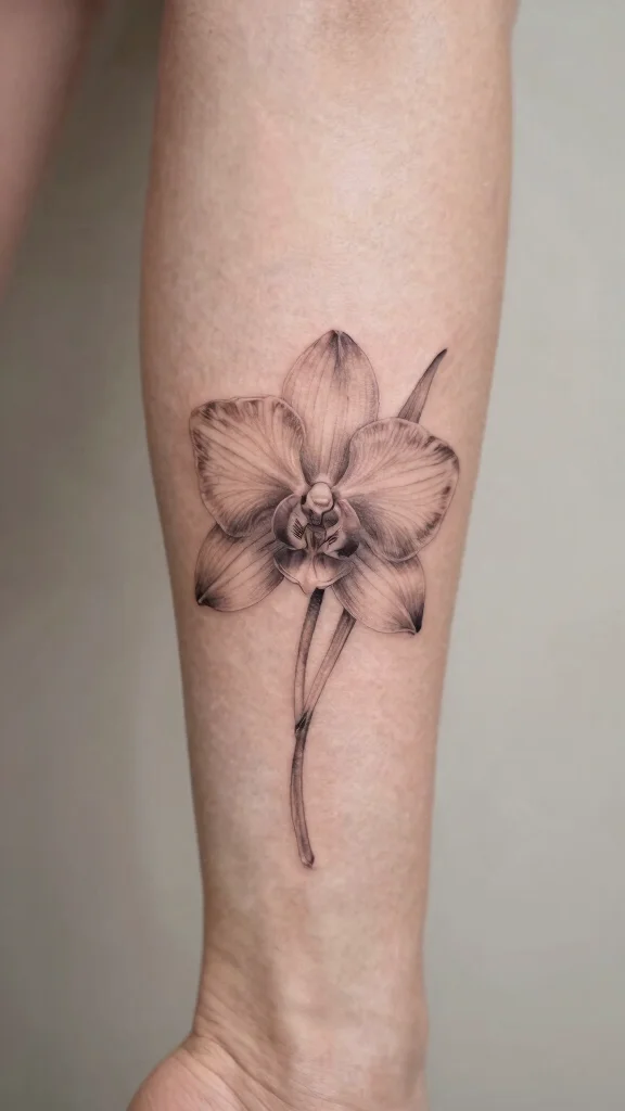 Are you looking for a tattoo that symbolizes beauty and strength? The delicate orchid tattoo is an exquisite choice, showcasing luxury and elegance in a minimalist style. Often placed on the side of the calf or above the knee, it offers a striking visual impact that highlights your appreciation for fine art.