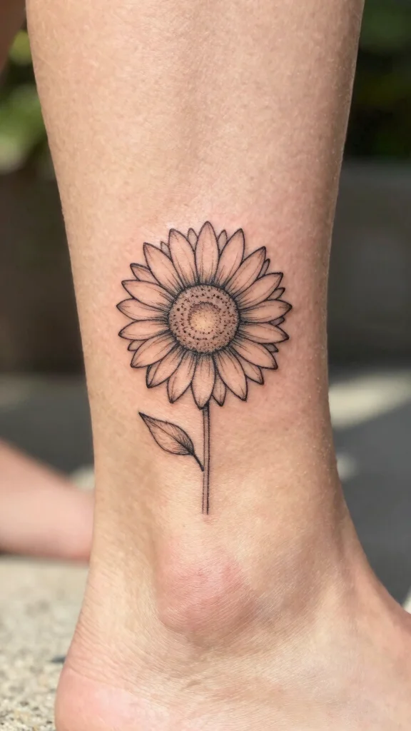 Do you want a tattoo that embodies happiness and positivity? The minimalist sunflower is a charming option that can brighten your tattoo collection. Small yet impactful, it can be placed on the ankle or the top of the calf, showcasing its iconic round center and elongated petals in a simple design.