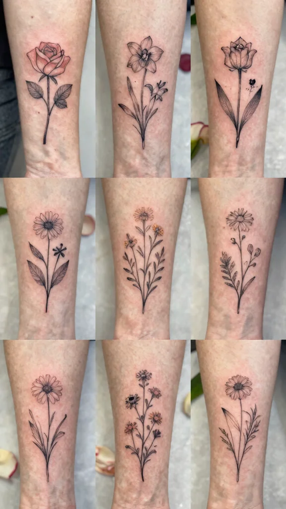 – Variety of Designs: This post features 15 unique small leg tattoo ideas, each with its own distinct floral inspiration.