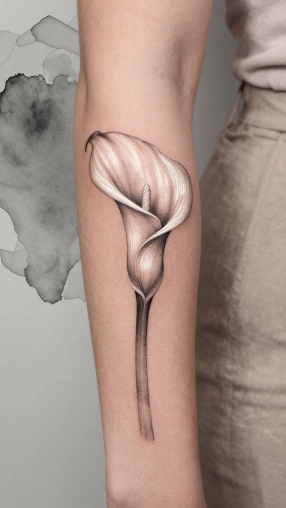 You can design a single calla lily for a striking visual, adding depth with classic whites or soft yellows. This tattoo can represent significant moments in your life and the beauty of new beginnings.