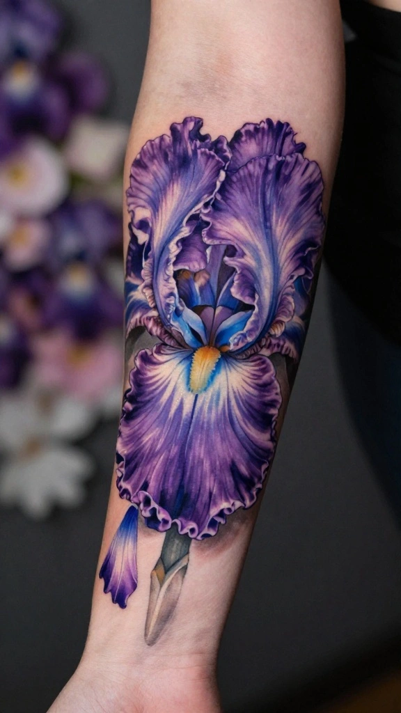 Iris flowers symbolize wisdom, hope, and faith, making them exceptional choices for tattoos. Their unique shapes and variety of colors allow for personal expression, whether you prefer realistic or abstract designs. An iris tattoo can represent a deep connection to personal growth and stability in your life.