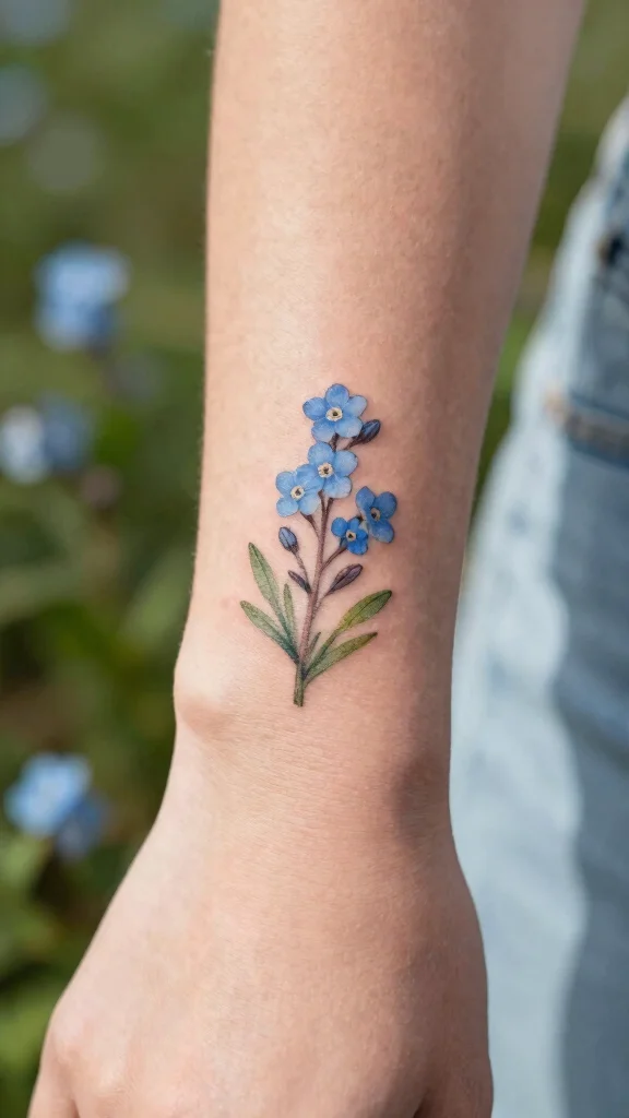 Forget-me-nots hold deep meanings of remembrance and true love, making them an emotionally resonant choice for tattoos. Their tiny blooms can create charming designs that evoke cherished memories or serve as tributes to lost loved ones. You can choose to depict them in clusters or as single flowers for varied styles.