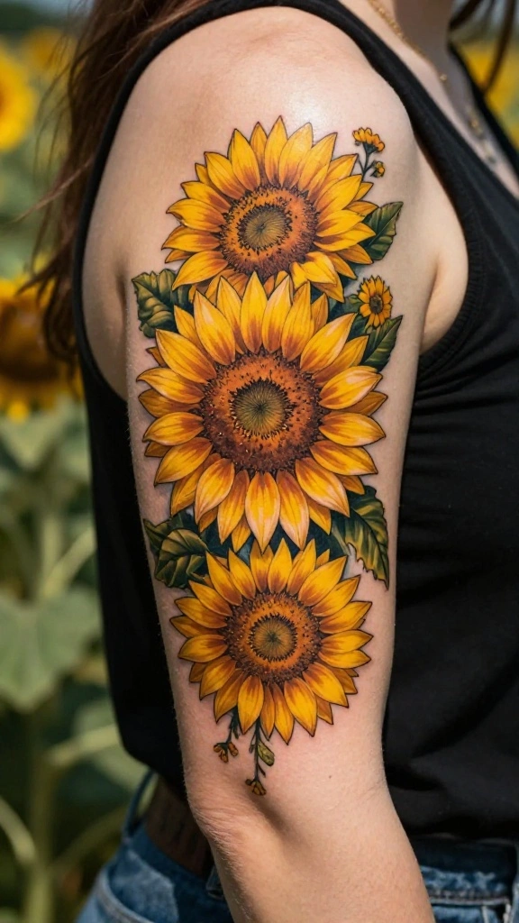 Choosing a sunflower tattoo allows for various artistic interpretations, from realistic designs to abstract art. A large sunflower on your upper arm can make a bold statement about your outlook on life.