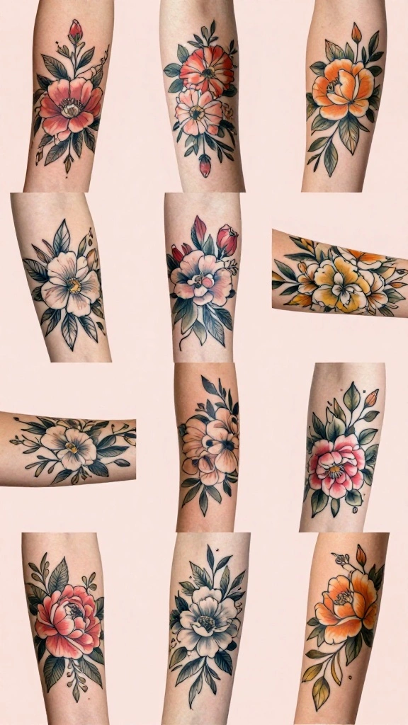 Bring a few references: photos of flowers you like, line-drawn silhouettes, or your own sketches. Explain the meaning you want to convey (your floral tattoo meanings), preferred scale and placement, and whether you want colorful flower ink or black lines. Ask about the best botanical tattoo ideas for your arm. Discuss pain tolerance and budget; a minimalist approach often costs less and heals faster, but quality matters. Your goal is an arm tattoo designs that feels personal and timeless.