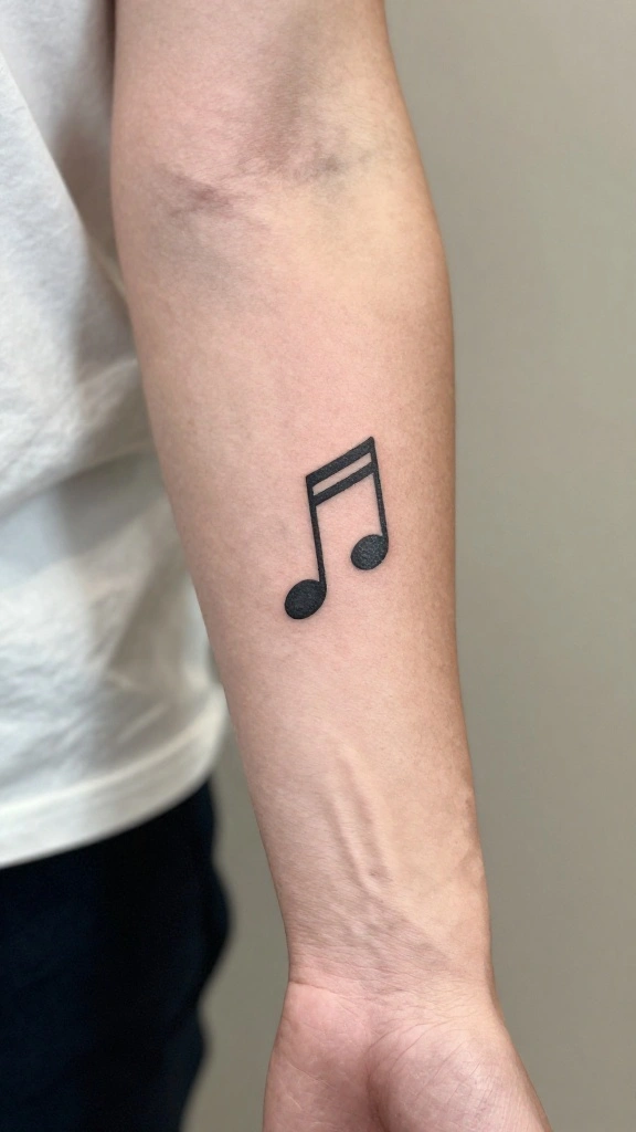 A minimalist music note tattoo intertwines identity with your love for music.