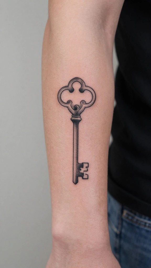 When choosing a key tattoo, think about the moments or opportunities it represents in your life. A simple silhouette can create a striking design while remaining meaningful. The arm serves as a fantastic canvas for showcasing your key tattoo prominently.