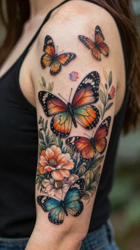Combine different floral elements like butterflies and wildflowers for a unique and personalized tattoo sleeve.