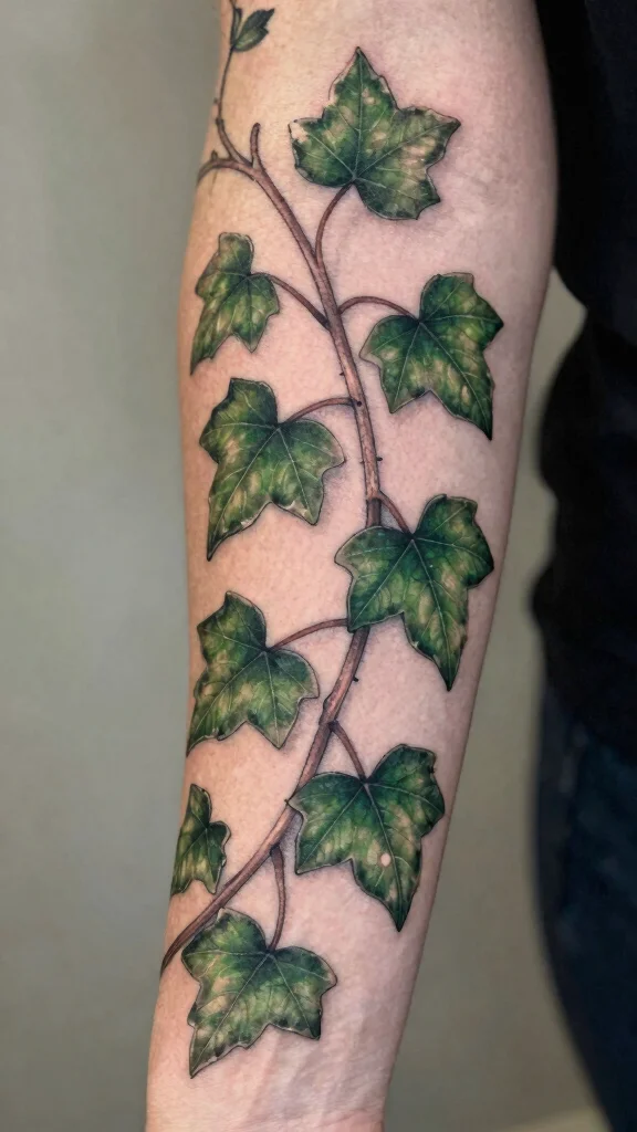 The intricate details of the ivy leaves provide opportunities for unique shading and detailing, creating a richly textured appearance. Depending on your preferences, this tattoo can be both elegant and bold.