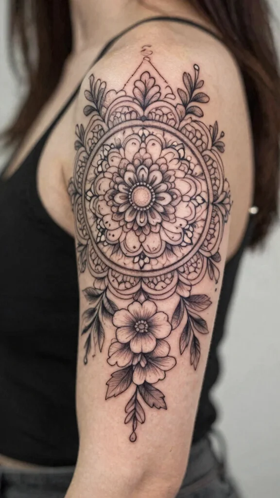 This tattoo elegantly marries art with nature, offering a deeply personal expression.
