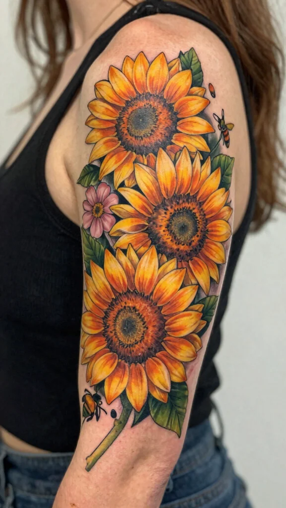 For a truly unique look, consider layering different colors and shapes to form a cohesive design that reflects your personality. Adding small creatures like bees or ladybugs can also bring an element of charm and whimsy to your tattoo.