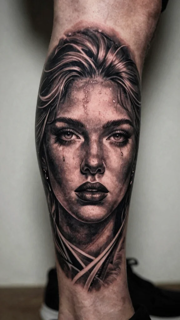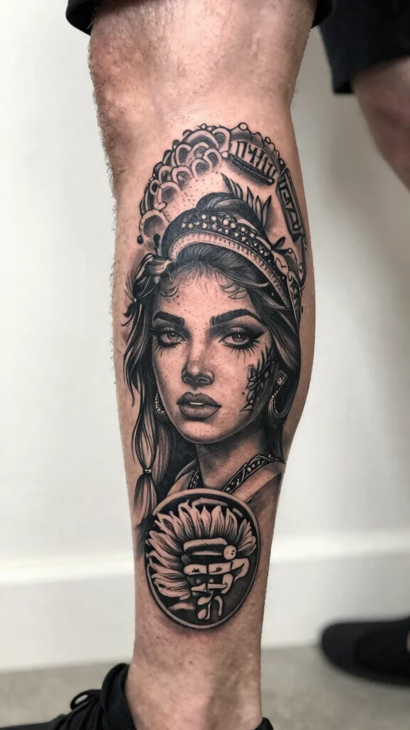 For a leg tattoo, consider a portrait that spans the thigh or calf, highlighting the facial features with precision.