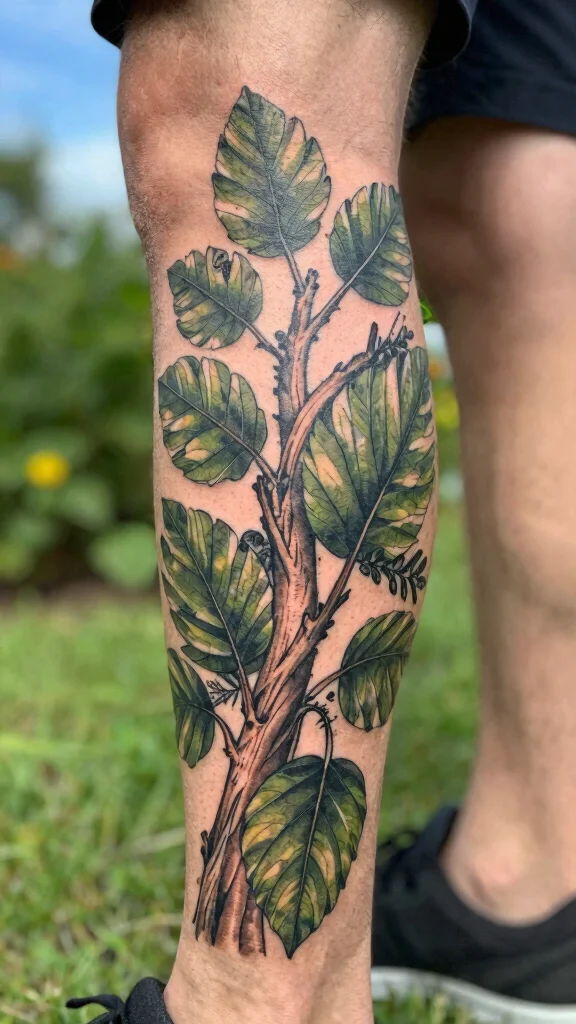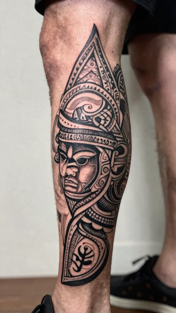 For a leg tattoo, consider a design that intertwines cultural elements with personal significance, creating a unique piece.