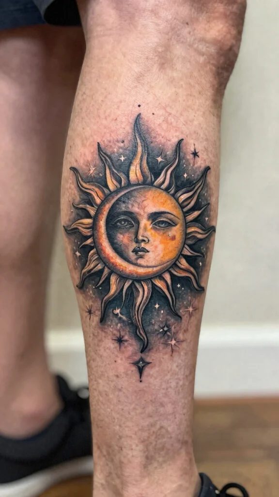 For leg tattoos, consider a sun and moon design wrapping around your calf or constellations flowing beautifully down your thigh.
