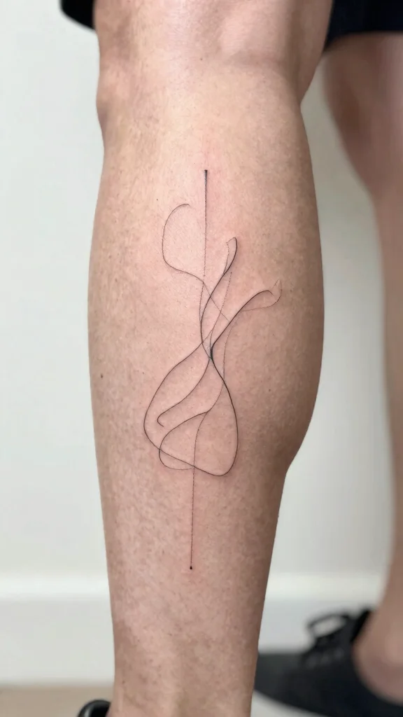 Minimalist line art tattoos are ideal for guys seeking a subtle yet stylish form of self-expression. These designs often feature continuous lines that create elegant shapes or images, like a mountain outline or a simple animal form. The understated beauty of these tattoos makes them versatile and easy to place on your leg.