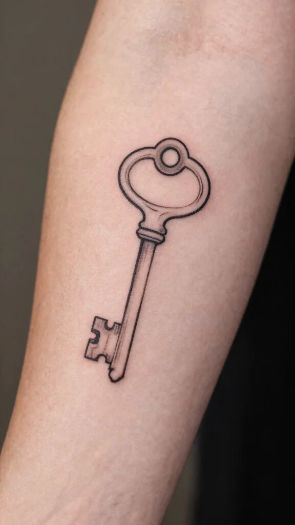 Consider how the key can reflect your personal journey—whether it symbolizes freedom or new opportunities. You can customize the design to include personal meanings, such as a special date or memory. Placement on the back arm allows for creative expression and visibility.