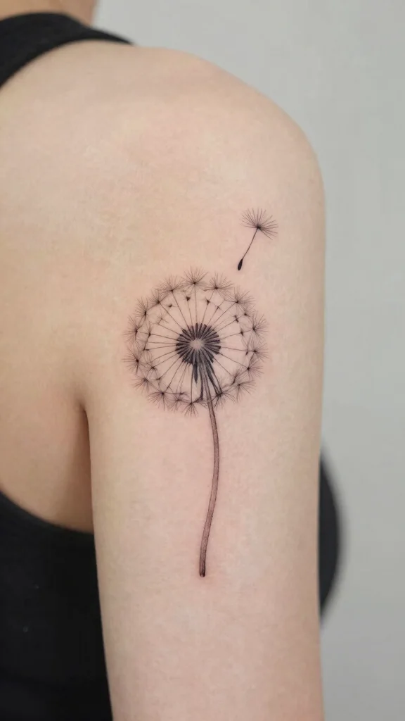 A dandelion tattoo serves as a lovely reminder to keep dreaming and embracing life’s possibilities.