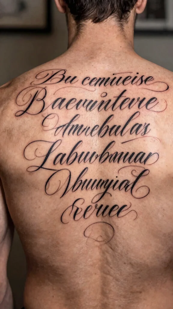 Classic script quotes can beautifully express your personal philosophy or mantra. Placing a meaningful quote across your back can constantly remind you of your core beliefs and values. The elegant flow of script allows for tailored designs that fit your unique style perfectly.
