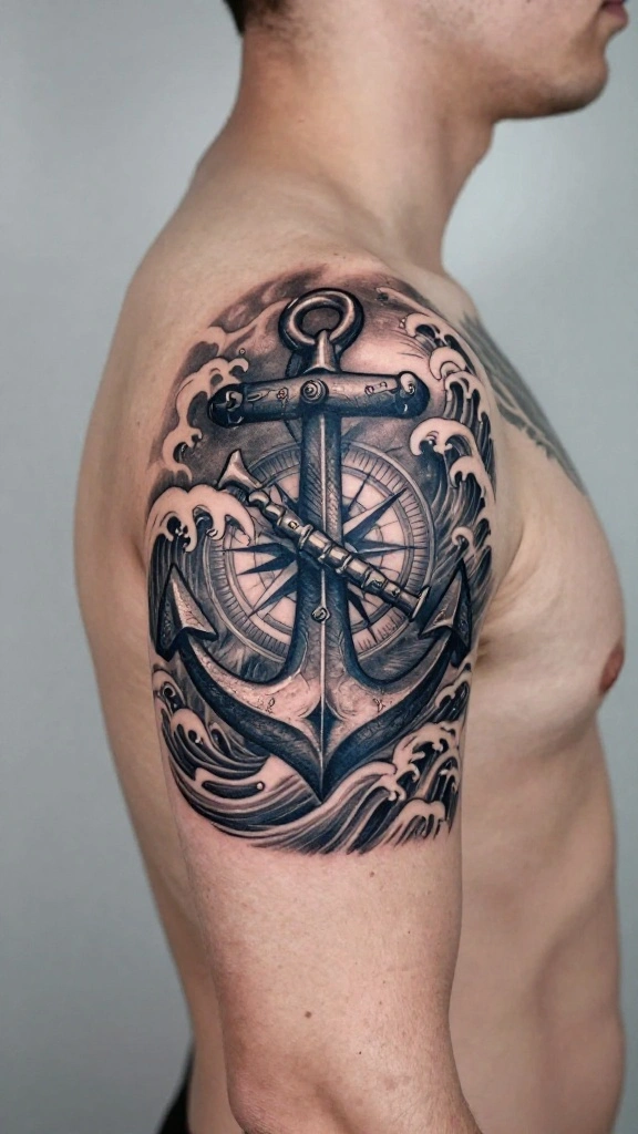 Nautical tattoos, like compasses and ships, evoke adventure and can be personalized to reflect your journey.