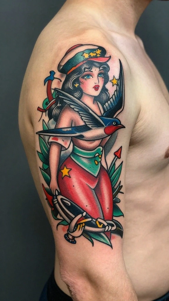 Vintage sailor tattoos draw inspiration from the rich lore of maritime history, exuding nostalgia and bravery. Featuring traditional elements like swallows, pin-up girls, and ships, these designs reflect various sailor beliefs and tales. A vintage sailor tattoo can convey a sense of adventure and historical connection.