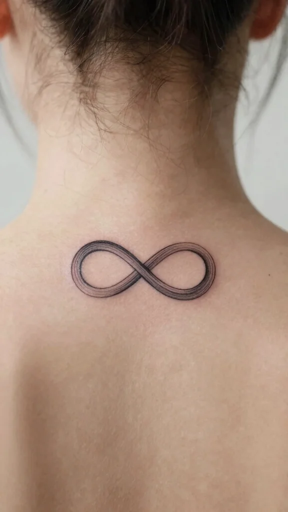 The infinity symbol is a powerful representation of eternal love and connection. A small infinity tattoo behind the neck can reflect bonds with loved ones or signify your belief in endless possibilities. Its minimalist design is both clean and timeless, appealing to many.