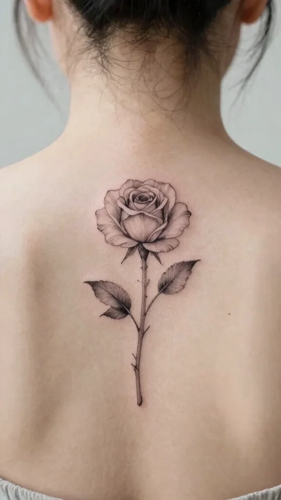 Floral tattoos are a lovely way to express femininity and elegance. A small flower, like a daisy or rose, can be simply outlined for a minimalist effect or intricately detailed for added allure. These tattoos symbolize beauty and new beginnings, making them a personal and aesthetic choice behind the neck.