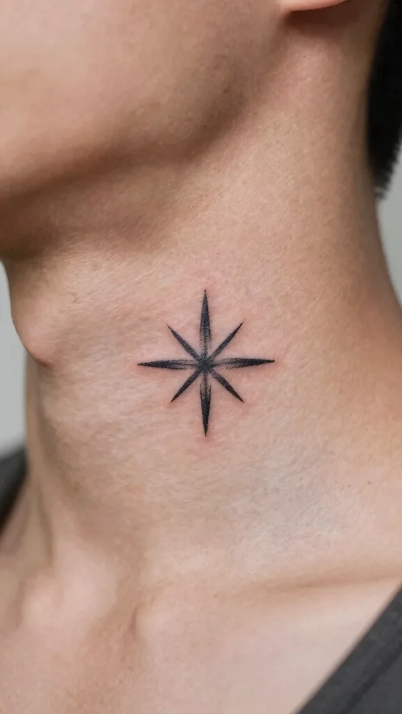 Star tattoos are timeless symbols representing guidance and dreams. A simple star design is ideal for those wanting a meaningful tattoo without excess. A small star tattoo on your neck can remind you to follow your dreams or honor a loved one.