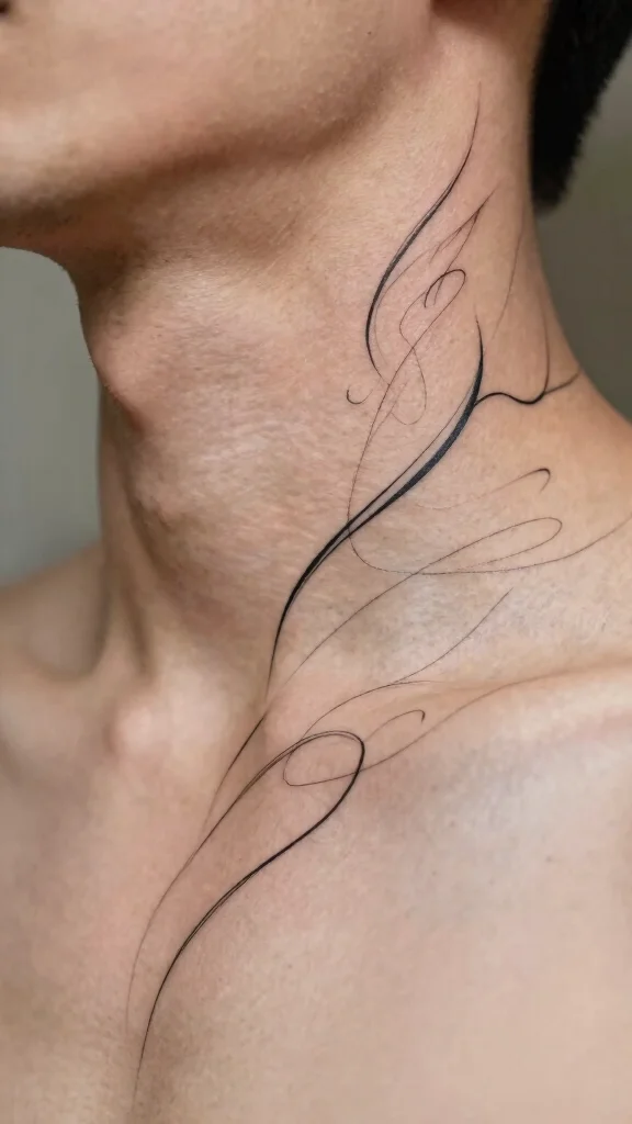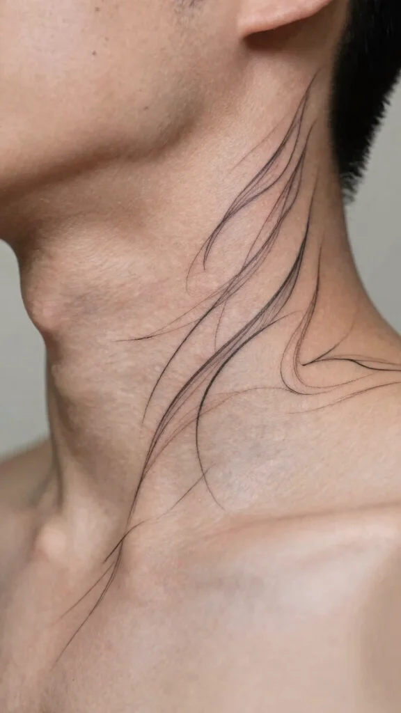 Abstract line tattoos are ideal for those seeking a contemporary artistic statement on their neck. These designs often feature flowing lines that can tell personal stories or evoke emotions. The beauty of abstraction lies in its open interpretation, allowing for a deeply personal connection.