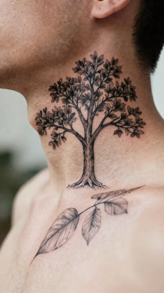 Nature tattoos can be simple outlines or detailed representations, catering to varying tastes. Consider a minimalistic tree outline or a more elaborate design wrapping around your neck.