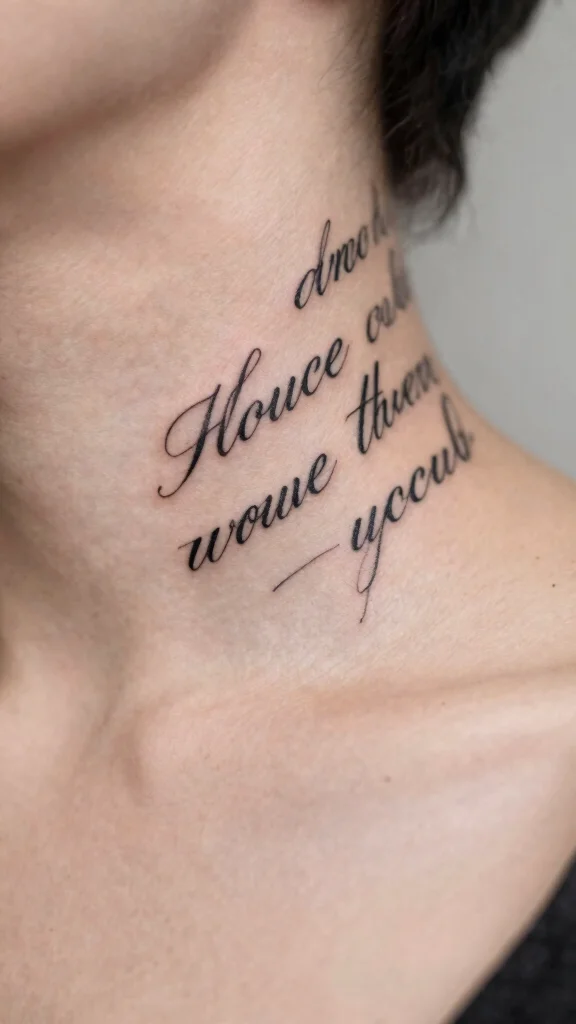 Tattoos with quotes or phrases allow you to carry a personal mantra or inspiring message. These designs can range from straightforward text to artistically rendered scripts. A well-placed quote on your neck can serve as a daily reminder of your values or aspirations.