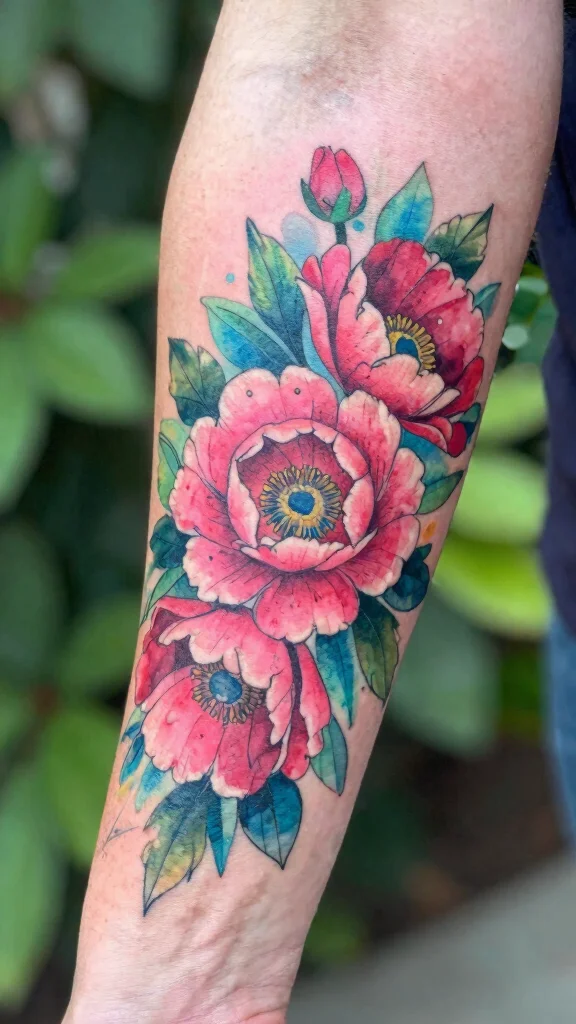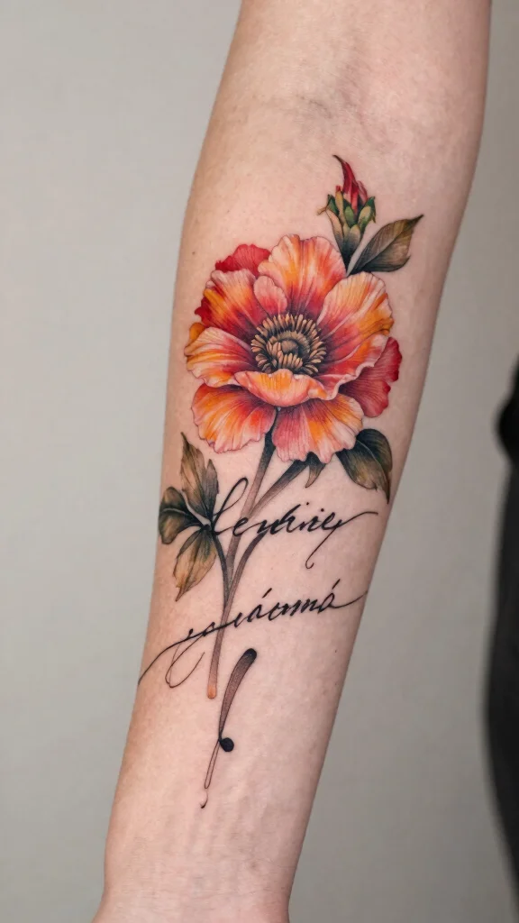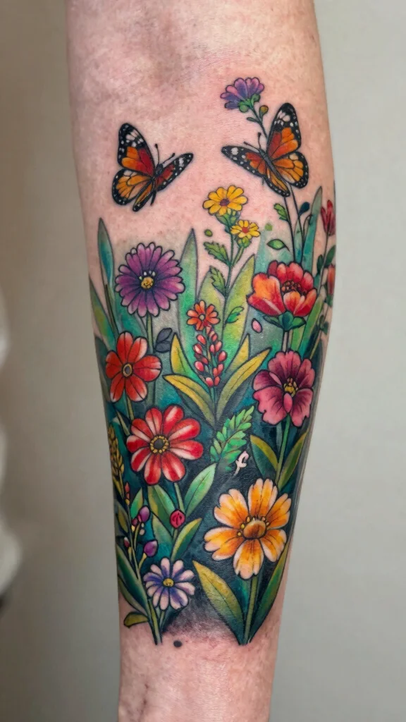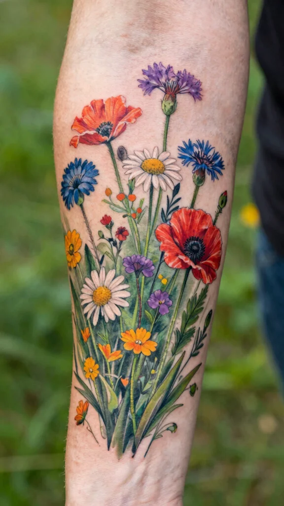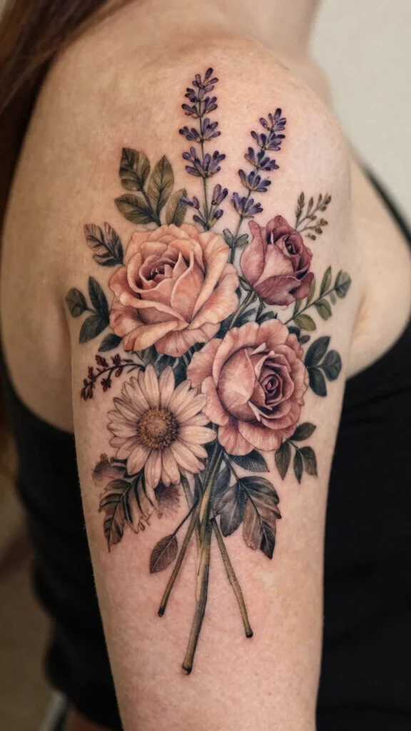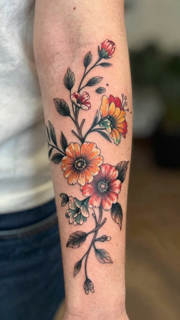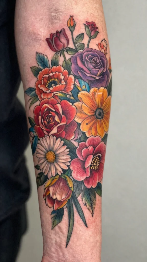 Consider which colors resonate with you and the flowers that hold personal significance. You can mix popular choices like roses and daisies, or opt for unique blooms that tell your story. Choose a size and placement that allows the colors to flow beautifully on your arm.