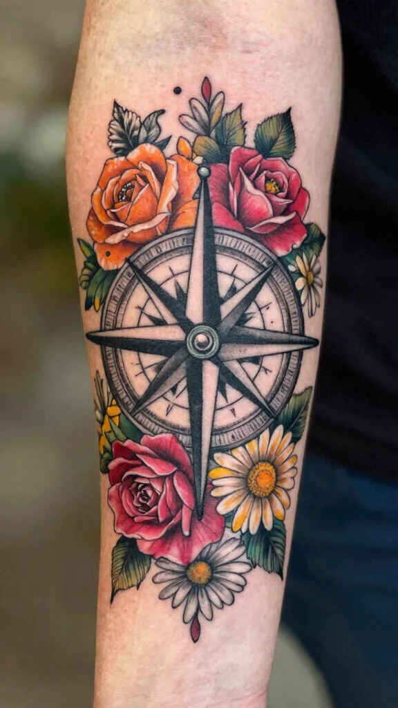 Suggestions for your floral compass tattoo: