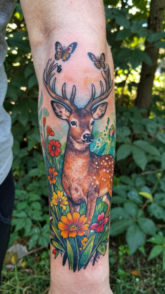 For nature lovers, a sleeve tattoo that combines wildlife with floral elements can be breathtaking. Imagine a majestic deer nestled among blooming wildflowers or a butterfly dancing over vibrant daisies. This design beautifully merges the elegance of flora with the majesty of fauna, expressing a deep connection to nature.