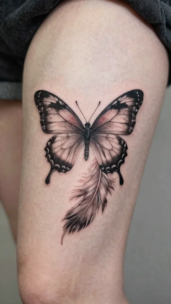 Combining butterflies with feathers creates a gentle and ethereal tattoo design. This concept often features a butterfly alongside graceful feathers, symbolizing freedom and lightness. The flowing nature of feathers paired with the structured beauty of a butterfly forms a captivating visual.